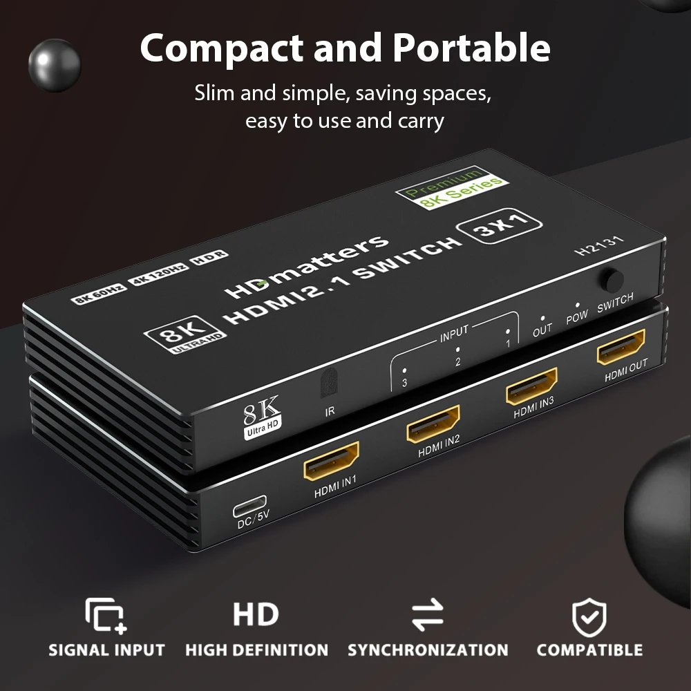 HDMI 2.1 Switch Splitter 120Hz 5-port HDMI 4K 120Hz 48gbps 8K with remote